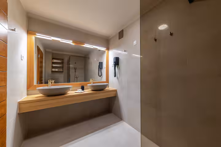 Inside, luxury is in the details. From the fully equipped kitchen and large modern bathroom to the Daikin climate control and ultra-premium 34 cm hypoallergenic mattresses, every inch is built for relaxation. The layout comfortably accommodates a small family thanks to the dedicated child’s bed.