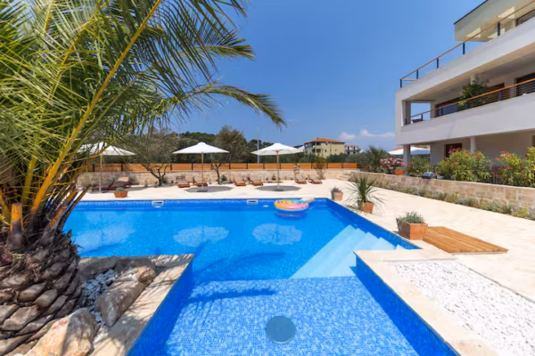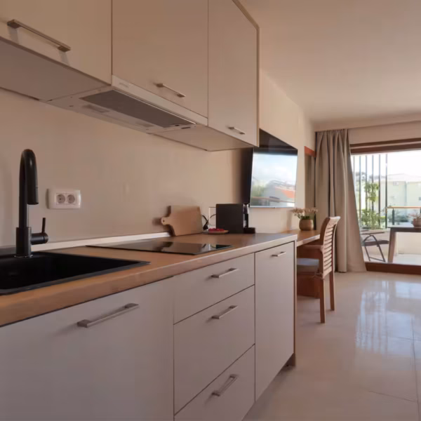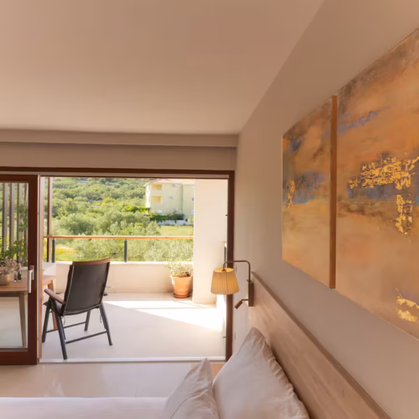 Imagine waking up to a framed view of the Mediterranean: the sea, the pool, and centuries-old olive trees right at your doorstep. This modern studio offers a beautiful shaded terrace, the perfect spot for your morning espresso or a quiet sunset drink in a serene atmosphere.